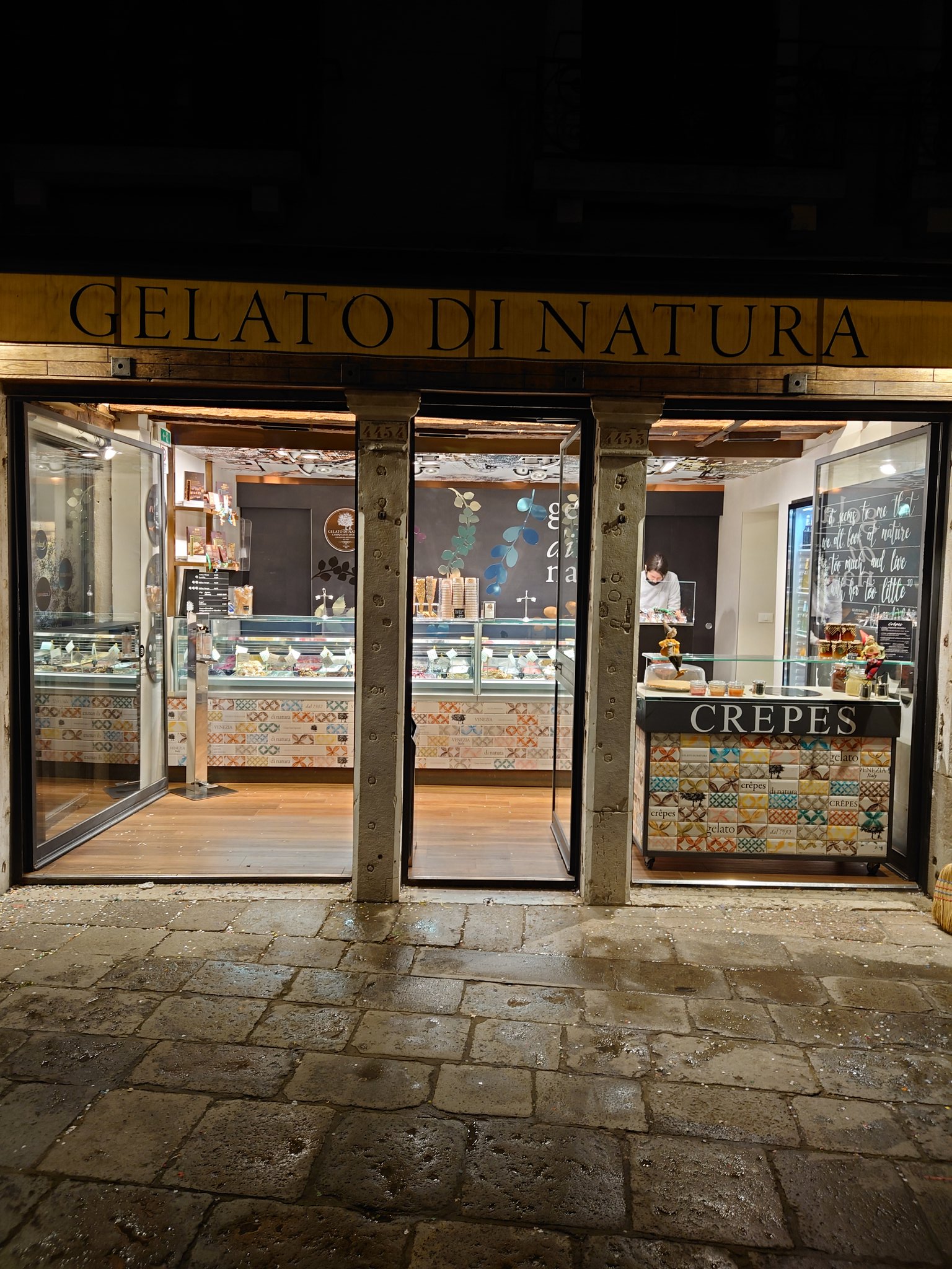 Gelato Di Natura: Cannaregio, 4454, 30121. Marco Polo is said to have brought the concept of ice cream to Venice after his odyssey to China, and the Venetians remain obsessed with the stuff. You could easily dement yourself trying to choose from what seems like hundreds of shops and stands, so we stuck to three stores, of which only one was in Cannaregio. We stopped at Gelato Di Natura most evenings on our way back to our hotel, but they have other locations across the city. It's really good. The proprietor is friendly, you don’t feel like you have to hurry to make your choices (although you stand back if it’s busy and choose from afar), and despite it being a franchise (there are several branches), it doesn’t feel as if the quality is compromised. Also, it is a fraction of the price of gelaterias closer to the Grand Canal. My favourites were the walnut and fig, coconut, gelato-filled mochi and the Gianduja Torino with hazelnuts from Piedmont and chocolate from the Ivory Coast. There’s a good vegan selection too. (TIP: the best pistachio gelato is not bright green; if it is bright, it has colouring added. The good stuff is a muddy shade of green because that’s the colour you get when you use good quality pistachios- often the Bronte kind from Sicily. The pistachio gelato at Osteria Alle Testiere is the gold standard here.)