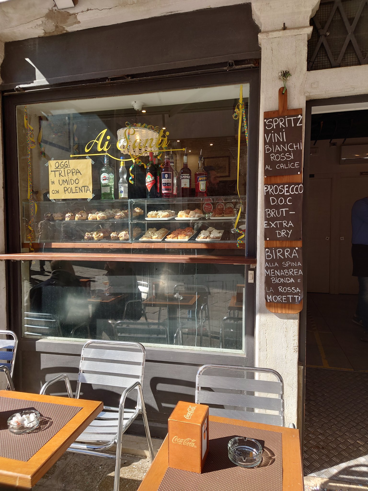 This is how Venetian window displays hypnotise their customers into buying chocolate. I was as fixated as a spaniel at a duck shoot. Yes, it is a chain, but it is good. Try the foyaten (praline stuffed with pistachio), the limoncello Baba, and their cappuccino biscuits. Also, un'abbondanza di campioni gratuiti de cioccolato.